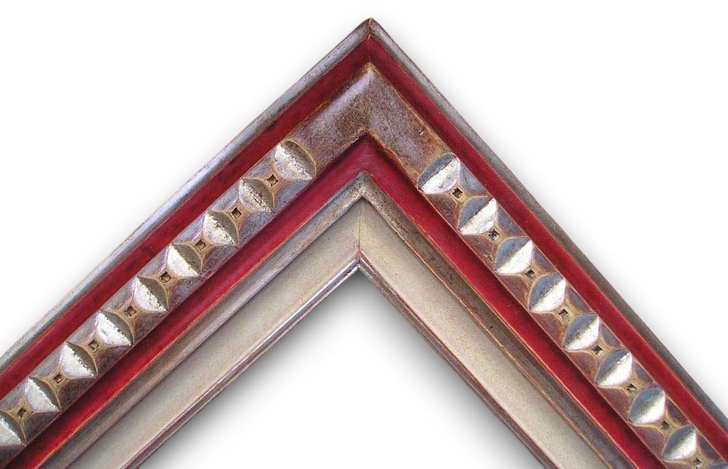 Sculpté pointes diamants angles argent plat gorge rouge vif